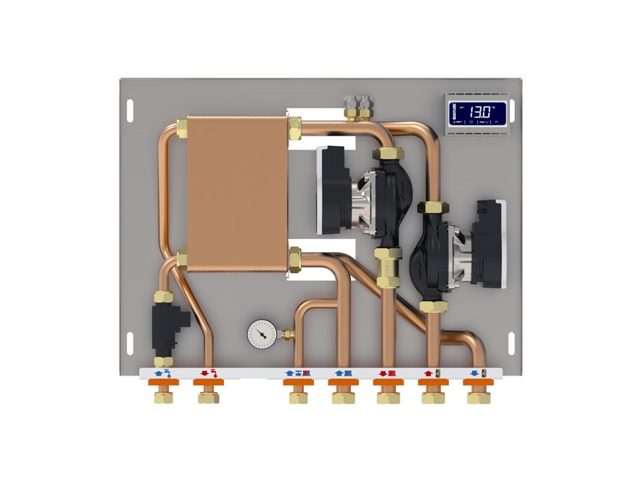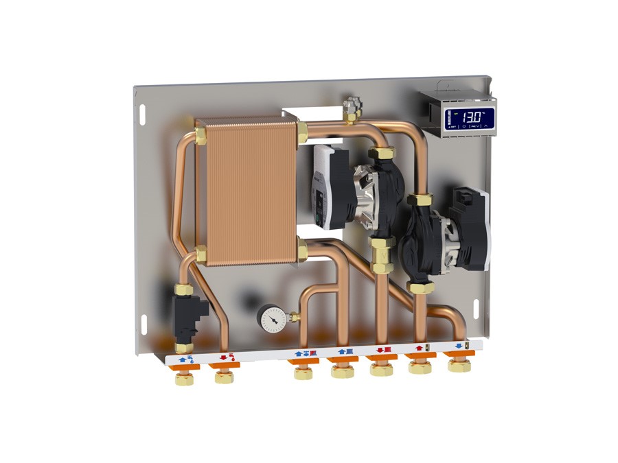 Modulo interfaccia caldaia / termoprodotto con produzione ACS, centralina elettronica integrata, sistema di riempimento lato impianto, Box di copertura incluso e potenze fino a 40 kW