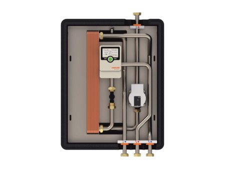Modulo produzione ACS istantanea con controllo elettronico integrato. Box di copertura incluso con produzione fino 40 lt/min